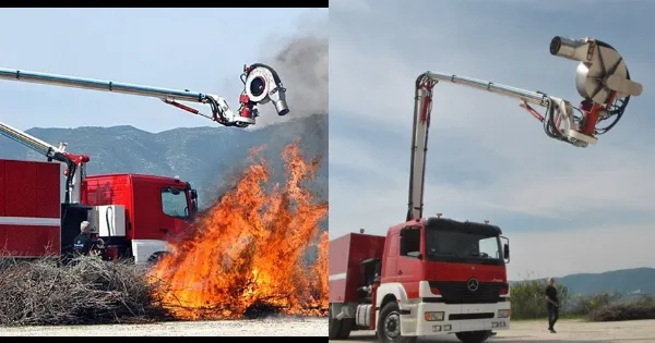 Αυτό γίνεται χάρη στην πίεση του αέρα που λειτουργεί ως σύμμαχος της συσκευής. Αυτή μπορεί να τοποθετηθεί πάνω στο πυροσβεστικό φορτηγό, αλλά και μόνη της με βάση στο έδαφος. Πραγματική απειλή για τις Φωτιές, οι οποίες στον μισό χρόνο θα μπορούσαν να σβηστούν.
