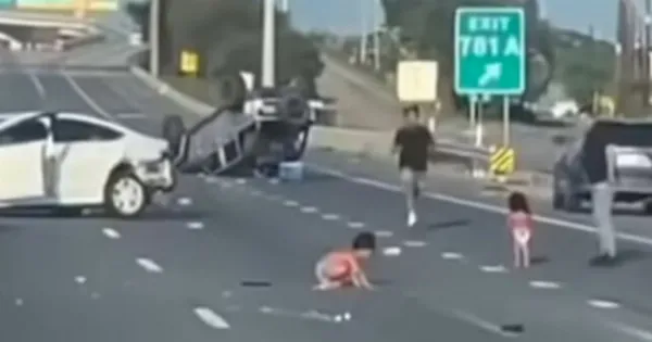 Ένα βίντεο που κυκλοφόρησε από το Τέξας προκαλεί σοκ, καθώς δείχνει δύο νήπια με πάνες να προσπαθούν να σταθούν στη μέση ενός αυτοκινητόδρομου, έπειτα από ένα σοβαρό τροχαίο ατύχημα.