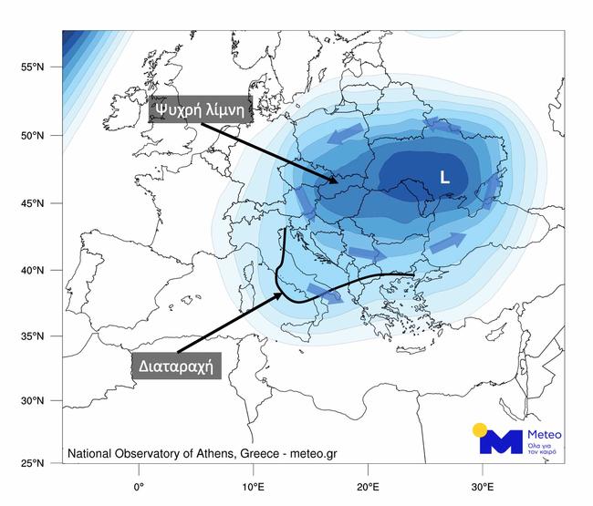 Η «Ψυχρή Λίμνη» είναι μια εκτεταμένη περιοχή χαμηλών πιέσεων με χαμηλές θερμοκρασίες. Αν δεν αλλάξει σημαντικά η κυκλοφορία της ατμόσφαιρας, μπορεί να μείνει στάσιμη σε μια περιοχή για αρκετές ημέρες, όπως συμβαίνει τις τελευταίες ημέρες.