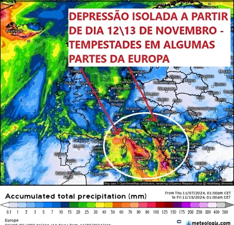 Οι επόμενες ημέρες προβλέπεται να φέρουν έντονη κακοκαιρία στα Βαλκάνια, με τα φαινόμενα να αναμένονται ιδιαίτερα έντονα στην Ιταλία και την Ελλάδα. Σύμφωνα με εκτιμήσεις Ισπανών μετεωρολόγων, στις 12 και 13 Νοεμβρίου υπάρχει αυξημένος κίνδυνος πλημμυρών, αποτέλεσμα της αποσταθεροποίησης ενός ισχυρού αντικυκλώνα στην Ευρώπη. Η απόσυρση του αντικυκλώνα αυτού αναμένεται να επηρεάσει το κλίμα στην περιοχή, ανοίγοντας τον δρόμο για την επικράτηση χαμηλών πιέσεων και επιδείνωση των καιρικών συνθηκών.