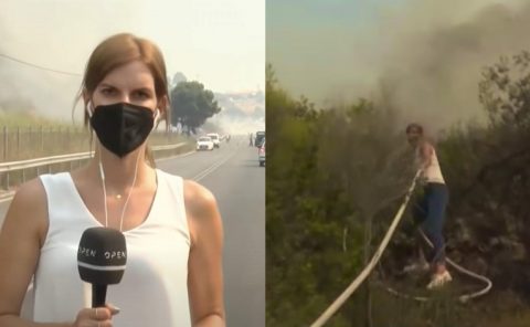 Δημοσιογράφος του OPEN φεύγει απ’ την κάμερα, πιάνει τη μάνικα και βοηθά τους πυροσβέστες