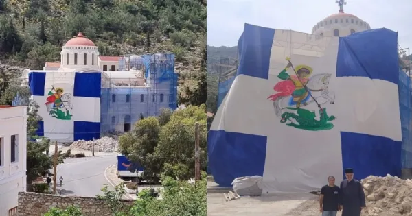Καστελλόριζο: Γιγάντια ορθόδοξη σημαία Στο μακρινό Καστελλόριζο ανεμίζει μια τεράστια σημαία, στα χρώματα του λευκού και του μπλε έχοντας πάνω…
