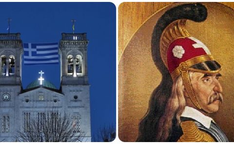 Τρίπολη: Η μεγάλη ελληνική σημαία υψώθηκε ανάμεσα στα δύο καμπαναριά της εκκλησίας Τρίπολη: Μία τεράστια ελληνική σημαία υψώθηκε ανάμεσα στα…