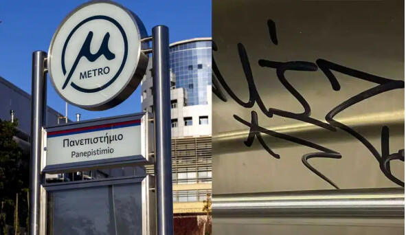 Άγνωστοι έγραψαν στις σκάλες του Μετρό Θεσσαλονίκης, στον σταθμό στην οδό Βούλγαρη, μία ημέρα, μάλιστα, πριν από τα εγκαίνια της…