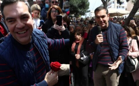 Ο Αλέξης Τσίπρας στη Νέα Σμύρνη: Τεράστια συγκέντρωση, περπάτησε κρατώντας ένα κόκκινο τριαντάφυλλο