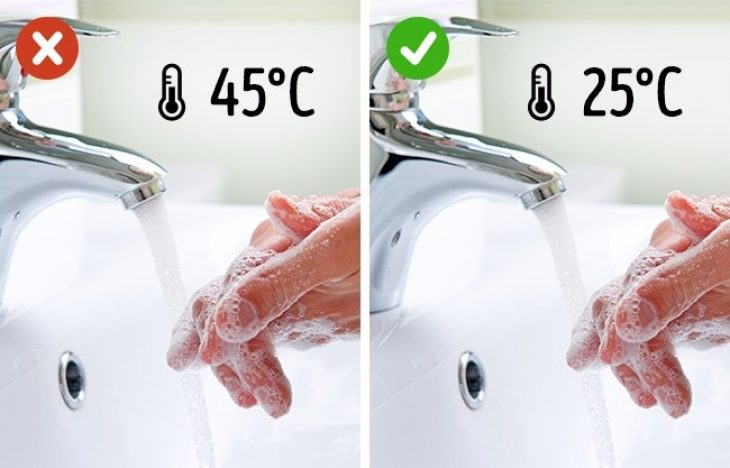 - Πλύνετε τα χέρια σας με ζεστό, αλλά όχι καυτό νερό.