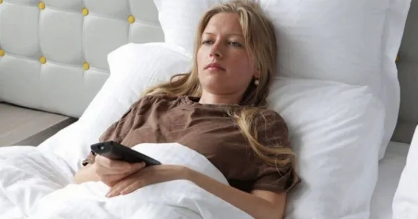 Όλοι γνωρίζουμε ότι η οθόνη παράγει μπλε φως το οποίο μπερδεύει την παραγωγή της μελατονίνης και κατά συνέπεια επηρεάζει τον ύπνο. Όσο δελεαστικό κι αν ακούγεται να μείνεις ξαπλωμένη και να κάνεις μαραθώνιο της αγαπημένης σου σειράς, προσπάθησε να αποφύγεις την τηλεόραση στο υπνοδωμάτιο και μάλιστα πριν κοιμηθείς.