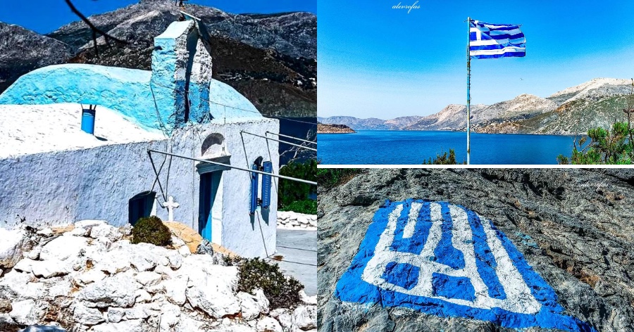 Αγία Κυριακή: Το εντυπωσιακό νησάκι και η γαλανόλευκη ζωγραφισμένη στα βράχια