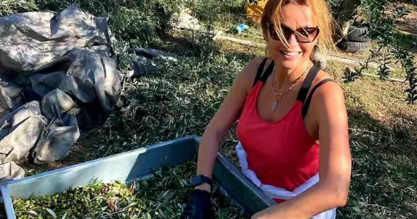 Στις φωτογραφίες η ηθοποιός φοράει τα γάντια της, ένα κολάν και μία ροζ φανέλα και χαμογελώντας στέκεται όρθια μπροστά από τις ελιές που έχει μαζέψει. Μία απλή φωτογραφία που υπό άλλες περιπτώσεις θα προσπερνούσαμε όλοι, με την προσθήκη της Παναγιώτας Βλαντή έγινε μία φωτογραφία που μπορείς να χαζεύεις πολλή ώρα.