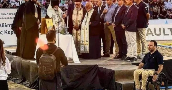 Αλγεινή εντύπωση προκάλεσε η εικόνα από τα εγκαίνια αθλητικών εγκαταστάσεων στην παραλία του Καρτερού στο Ηράκλειο της Κρήτης, όπου στην ειδικά διαμορφωμένη εξέδρα για τον αγιασμό βρίσκονταν όλοι οι επίσημοι προσκεκλημένοι εκτός του προέδρου της Παραολυμπιακής Επιτροπής.