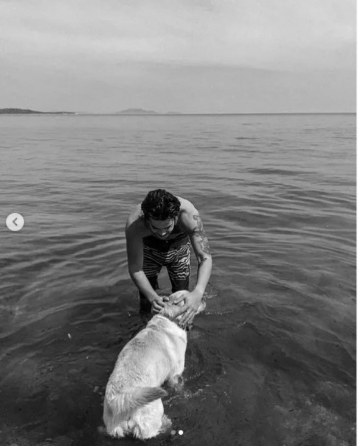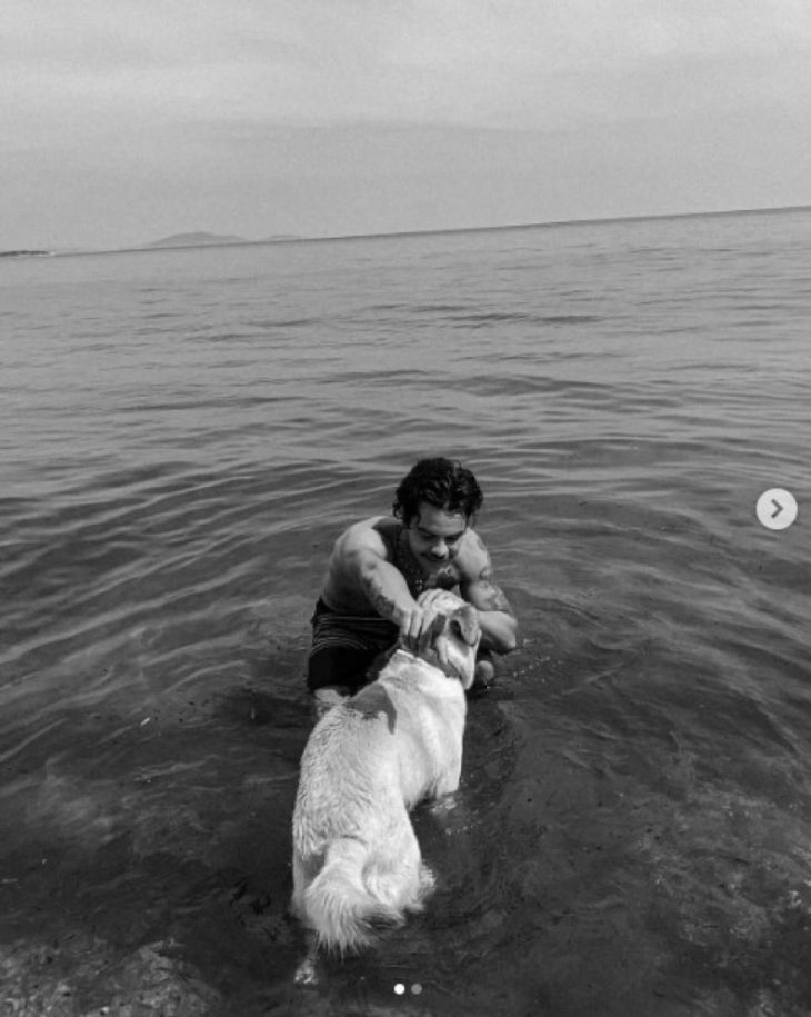 Όπως θα δείτε στην παρακάτω ανάρτηση, ο ίδιος δημοσίευσε δυο φωτογραφίες στις οποίες τον βλέπουμε να ποζάρει παρέα με τον τετράποδο φίλο του. (Δείτε εδώ το πρόσφατο ταξίδι του με την μητέρα του και την σύντροφό του).
