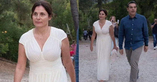 Ιδιαίτερα κομψή και εντυπωσιακή ήταν η Μπέτυ Μπαζιάνα σε πρόσφατη εμφάνιση της στο θέατρο της Επιδαύρου, οπού εμφανίστηκε με ένα λευκό, αρχαιοελληνικό τύπου φόρεμα δίπλα στον πρώην πρωθυπουργό.