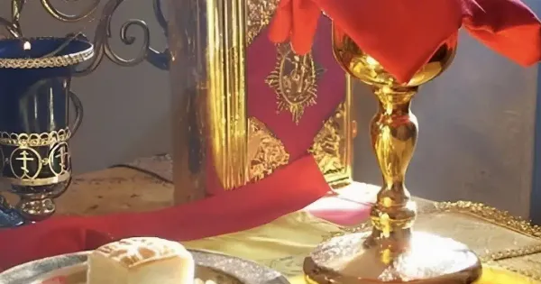 Όποιος καταπονήθηκε από την νηστεία, και καλώς έπραξε, ας απολαύσει τώρα την αμοιβή του, που δεν είναι άλλη, από τον παρατιθέμενο ουράνιο αυτό Μυστικό Δείπνο, της θείας και ιεράς Κοινωνίας.