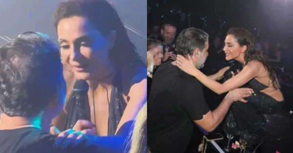 Ο φωτογραφικός φακός απαθανάτισε τον Βασίλη Μπισμπίκη στο νυχτερινό κέντρο που εμφανίζεται η αγαπημένη του, απολαμβάνοντάς την, πάνω στη σκηνή.