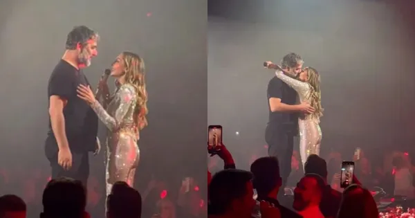 Δευτερόλεπτα μετά την αφιέρωση, το ζευγάρι αντάλλαξε ένα μεγάλο φιλί στην πίστα, την ίδια ώρα που πανέρια με τα γαρύφαλλα έπεφταν πάνω τους. Κατά τη διάρκεια της τρυφερής στιγμής ανάμεσά τους, μερικοί από τους θαμώνες χειροκροτούσαν, άλλοι έβγαλαν τα κινητά τους για να απαθανατίσουν τη στιγμή και άλλοι τους πέταγαν λουλούδια.