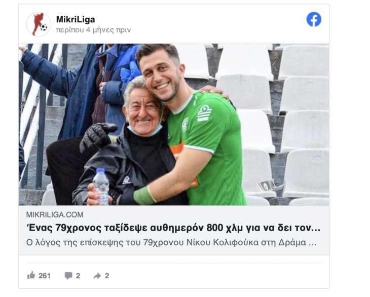 Όπως αναφέρει το soccerpractor.blogspot.com., o 79χρονος παππούς έκανε ταξίδι απόστασης 800 χιλιομέτρων, αλέ ρετούρ για να πάει από την πόλη της Ηπείρου στη Δράμα και να επιστρέψει.