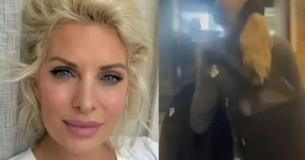 Η κάμερα κατέγραψε την επιστροφή της Ελένης Μενεγάκη από την πύλη Α του αεροδρομίου “Ελευθέριος Βενιζέλος”.