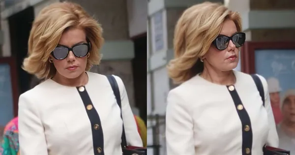 Ειδικότερα, η μαέστρος φορούσε ένα σακάκι σε ασπρόμαυρους τόνους με χρυσαφένια κουμπιά, αξίας 500 ευρώ, της Ιταλίδας σχεδιάστριας Elisabetta Franchi και το συνδύασε με μαύρο παντελόνι σε ίσια γραμμή και γόβες σε nude απόχρωση, ενώ η εμφάνισή της ολοκληρώθηκε με tote bag Louis Vuitton, αξίας 3.000 ευρώ.