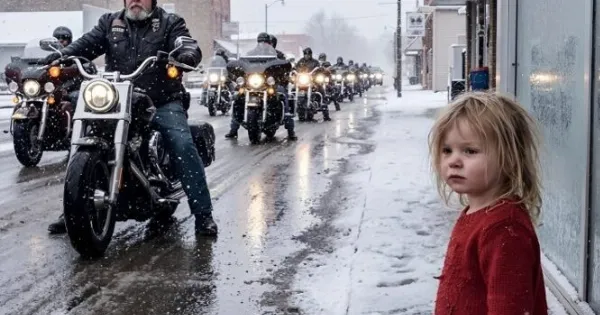 Ένα 6χρονο κοριτσάκι στεκόταν ξυπόλυτο στο χιόνι, έξω από ένα ερημικό κατάστημα δίπλα στον αυτοκινητόδρομο. Περίμενε ακριβώς στο σημείο όπου η μητέρα της της είχε πει να μείνει ακίνητη — μέχρι που μια ομάδα νυχτερινών μοτοσικλετιστών μπήκε στο πάρκινγκ και συνειδητοποίησε ότι το παιδί στεκόταν εκεί ήδη πολλές ώρες