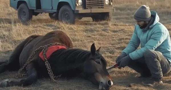 Ένας κτηνίατρος που έσπασε τις σκουριασμένες αλυσίδες ενός άγριου επιβήτορα δέχεται την πιο όμορφη έκφραση ευγνωμοσύνης