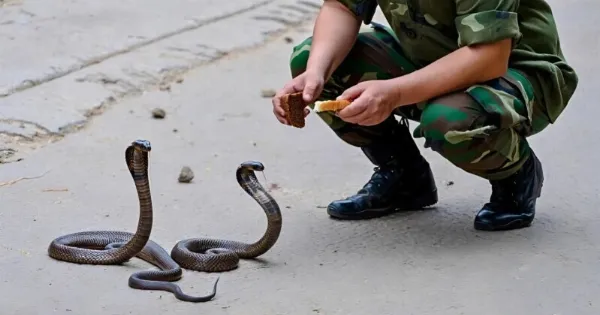 Ένας στρατιώτης σχεδόν κάθε μέρα τάιζε μικρά φιδάκια για διασκέδαση και ήταν σίγουρος ότι όλο αυτό ήταν ένα αθώο παιχνίδι. Όμως ένα πρωί, στην είσοδο της σκηνής του, τον περίμενε ένας τέτοιος τρόμος για τον οποίο δεν ήταν καθόλου προετοιμασμένος 😢😱