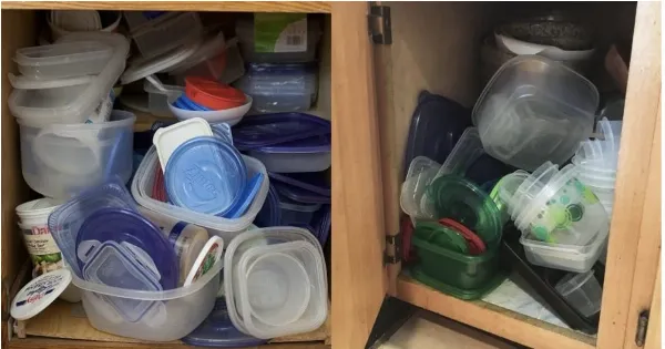 Στα ντουλάπια που φιλοξενούν τα τάπερ όταν καλείστε να αφαιρέσετε ένα  φεύγουν από τη θέση τους όλα. Και όμως υπάρχουν έξυπνα κόλπα για να έχετε τα ντουλάπια της κουζίνας πάντα συμμαζεμένα.