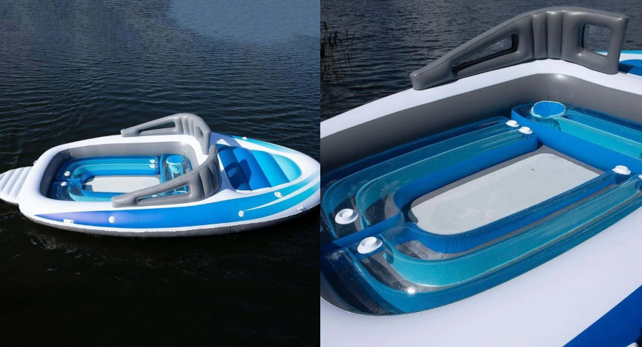 Η περιγραφή του προϊόντος στην Amazon αναφέρει: Είτε θέλετε να οδηγήσετε, να παίξετε ή να χαλαρώσετε, αυτό το υπερμέγεθες πλωτό σκάφος είναι το κατάλληλο για εσάς. Είναι αρκετά μεγάλο για όλη την οικογένεια-τα παιδιά και οι ενήλικες θα απολαύσουν τον ήλιο παρέα.