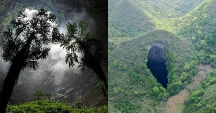 Δέντρα ύψους 40 μέτρων βρέθηκαν να ορθώνονται από τη βάση της γιγάντιας τρύπας με τα κλαδιά τεντωμένα προς το φως που πέφτει από το άνοιγμα στην κορυφή. Ανάμεσά τους, φυτά που φτάνουν μέχρι τον ώμο επιζούν με το λιγοστό φως.