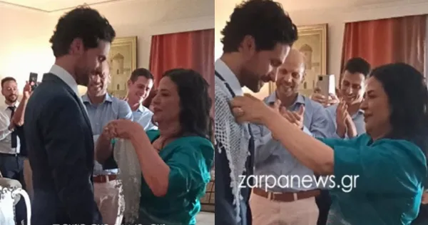 Συγκινημένη και περήφανη για τον γιο της, η Μαρία Τζομπανάκη έλαμπε από ευτυχία, έχοντας φροντίσει ωστόσο να υπάρχει έντονο “άρωμα” Κρήτης όχι μόνο με το λευκό σαρίκι που φορούσε ο γαμπρός και μερικοί από τους καλεσμένους και το παραδοσιακό γαμοκούλουρο, αλλά και με τους Κρητικούς μουσικούς και χορευτές που πλαισίωσαν την ευτυχισμένη αυτή στιγμή.