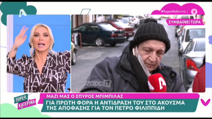 «Θέλω να διευκρινίσω ότι δεν ήξερα ότι θα γίνει αυτή η ζωντανή σύνδεση έξω από το σπίτι μου γιατί έχω πει όχι σε όλα τα κανάλια. Επομένως το να είστε έξω από το σπίτι μου δεν είναι με την δική μου έγκριση. Με πετύχατε εσείς, για να μην συμβεί παρανόηση με τα άλλα κανάλια» τόνισε, μέσα σε όλα, ο Σπύρος Μπιμπίλας