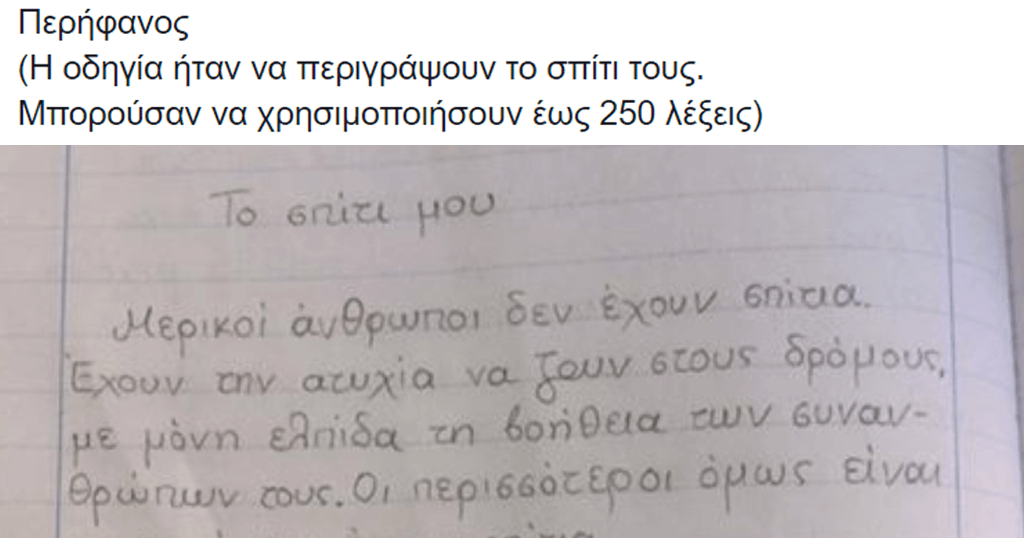 Μαθήτρια δημοτικού: Συγκλόνισε τον δάσκαλο με την έκθεσή της