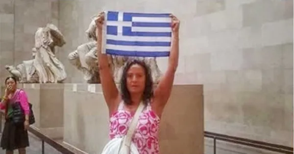 Ελληνίδα πατριώτισσα: Ύψωσε την γαλανόλευκη στο Βρετανικό Μουσείο