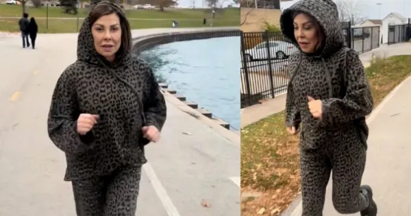 Αδράζει τις ημέρες της στο Σικάγο η Άντζελα Δημητρίου, η οποία έβαλε τις φόρμες της και βγήκε για τζόκινγκ στους δρόμους της πόλης.