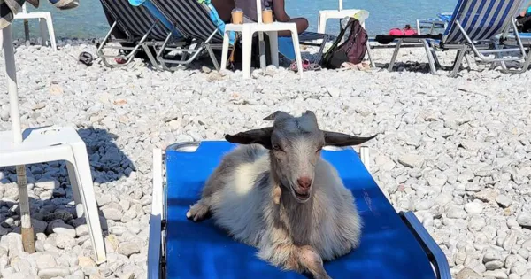 Ώρες ώρες τα ζώα μοιράζουν στιγμές γέλιου και χαράς και αυτό ακριβώς έκανε και μια κατσίκα στην Σύμη, η οποία όχι μόνο δεν φοβήθηκε τους ανθρώπους αλλά μάλιστα πλησίασε και “σαν κυρία” έκατσε στην ξαπλώστρα της να απολαύσει την παραλία.
