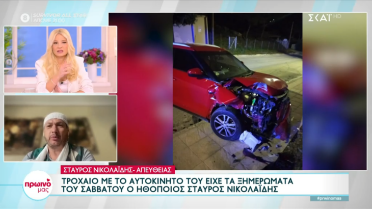 Ο Σταύρος Νικολαΐδης περνάει δύσκολες στιγμές καθώς πριν από λίγες ημέρες υπέστη ένα σοβαρό τροχαίο ατύχημα. Ο ηθοποιός εμφανίστηκε στην εκπομπή «Πρωινό μας» και τα τραύματα του ήταν εμφανή.