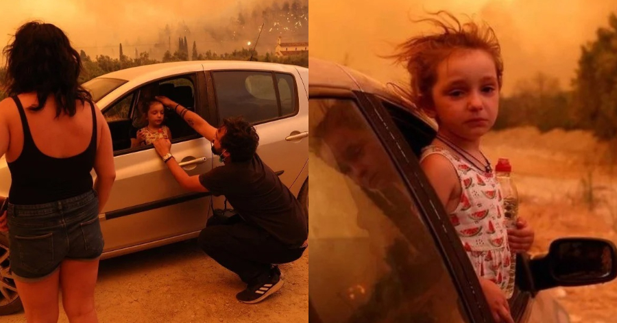 Η φωτογραφία του Γιώργου Μουτάφη απεικονίζει ένα μικρό κορίτσι να βγάζει το κεφάλι έξω απ’ το παράθυρο του αυτοκινήτου και να κλαίει με φόντο την πύρινη λαίλαπα. Όπως ήταν αναμενόμενο η συγκεκριμένη φωτογραφία συγκίνησε ολόκληρη την Ελλάδα.
