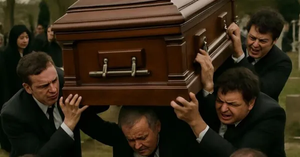 Όταν ήρθε η ώρα να κατεβάσουν το φέρετρο στον τάφο, οι άνδρες πλησίασαν, πήραν τις χειρολαβές – και ξαφνικά…