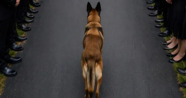 Λίγο πιο πέρα στεκόταν ο σκύλος του αξιωματικού — ένα βελγικό μαλινουά. Δεν γάβγιζε, δεν ανησυχούσε, απλώς κοιτούσε προσεκτικά το φέρετρο χωρίς να παίρνει το βλέμμα του από πάνω του. Αυτός ο σκύλος ήταν μαζί του στις αποστολές. Έσωζε ανθρώπους μαζί του. Δούλευαν σαν ένα σώμα. Εκείνος τον εμπιστευόταν περισσότερο από οποιονδήποτε άλλον.