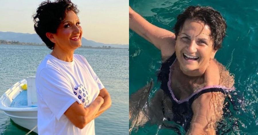 Συγκεκριμένα, στη φωτογραφία αυτή, βλέπουμε την Άλκηστις Πρωτοψάλτη να ποζάρει με το μαγιό της, χαμογελώντας στον φακό και στα χέρια της κρατάει την πετσέτα της.