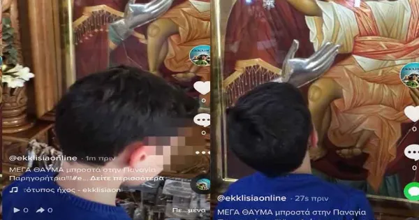 Ένα θαύμα θα μπορούσαμε να πούμε ότι έζησε ένα μικρό αγόρι το οποίο προσκύνησε στην Παναγία την παρηγορήτρια και όπως εξομολογήθηκε, την είδα να κλαίει.