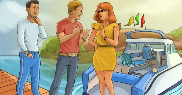 Η παραπάνω εικόνα δείχνει δύο άνδρες και μια γυναίκα να συζητούν μπροστά από ένα γιοτ. Και οι δύο άνδρες υποστηρίζουν ότι τους ανήκει το γιοτ. Ο ένας λέει ψέματα και ο άλλος την αλήθεια. Ποιος είναι ο πραγματικός ιδιοκτήτης του γιοτ;