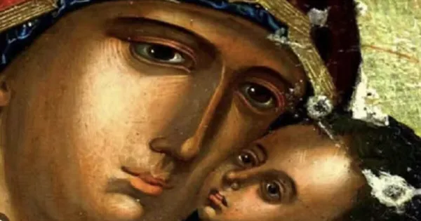 Σήκω και φύγε και πήγαινε στις πέτρες και στα βράχια Εκεί χτύπα τις γροθιές σου και μάτωσε τες. Εγώ πιστεύω και λατρεύω αυτό το όμορφο πρόσωπο της Παναγιάς μας Κανείς δεν πόνεσε περισσότερο από εκείνη και καμμιά καρδιά δε μάτωσε περισσότερο από την δική της.