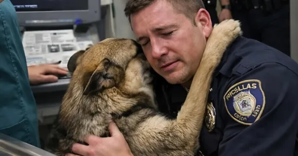 Ο αστυνομικός έσκυψε και αγκάλιασε τον υπηρεσιακό του σκύλο, ενώ ο κτηνίατρος ετοίμαζε για εκείνον την τελευταία ένεση: όμως την τελευταία στιγμή ο σκύλος έκανε κάτι που έκανε όλους στο δωμάτιο να παγώσουν από το σοκ 😲😱