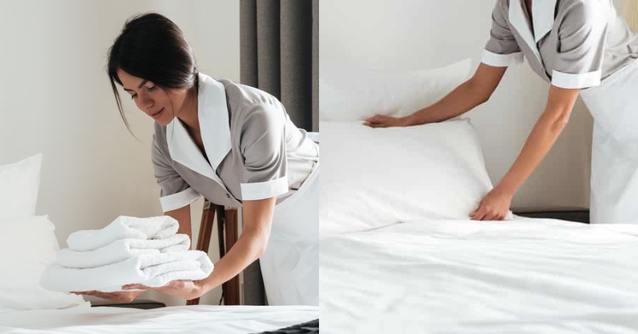 – Ξεκινάνε από την ακαταστασία: Όλες οι καμαριέρες ξεκινάνε να καθαρίζουν μαζεύοντας πρώτα όλα τα πεταμένα ρούχα, τις πετσέτες και τα σκουπίδια. Αφού βάλουν σε μια τάξη το δωμάτιο αμέσως μετά προχωράνε στην καθαριότητα. Το κομμάτι της ακαταστασίας είναι πολύ σημαντικό και πρέπει να διορθωθεί πρώτο ώστε να μπορεί μετά ο χώρος να είναι πιο άδειος για να καθαριστεί ευκολότερα. Συμπέρασμα: μην ξεκινάτε να καθαρίσετε ένα ακατάστατο δωμάτιο.