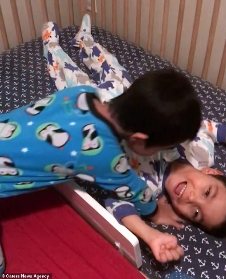 Στο αξιολάτρευτο βίντεο, ο νεαρός φαίνεται να φροντίζει με αγάπη τα αδέλφια του πριν τα καληνυχτίσει με ένα γλυκό φιλί!