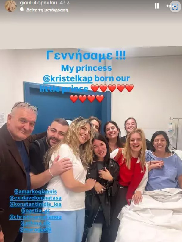«Γεννήσαμε! Η πριγκίπισσά μου γέννησε τον μικρό μας πρίγκιπα. Καλώς μας ήρθες μικρέ πρίγκιπα», ήταν το μήνυμα της Γιούλης Ηλιοπούλου για τον ερχομό του εγγονού της.