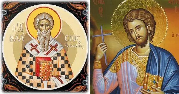 Βλάσιος ο Ιερομάρτυρας: Εορτάζει στις 15 Ιουνίου. Προστατεύει όσους αντιμετωπίζουν ασθένειες που σχετίζονται με το λαιμό. Σύμφωνα με την παράδοση είχε σώσει ένα παιδί που κόντευε να πνιγεί από ψαροκόκαλο, που του είχε σφηνωθεί στο λαρύγγι του. Ο Άγιος έκανε το σημείο του Σταυρού πάνω στο λαιμό του παιδιού και αμέσως το κόκαλο βγήκε, γι΄ αυτό και στην ημέρα της εορτής του, όσοι έχουν πρόβλημα στον λάρυγγα σταυρώνονται με δυο κεριά σε σχήμα Χ.