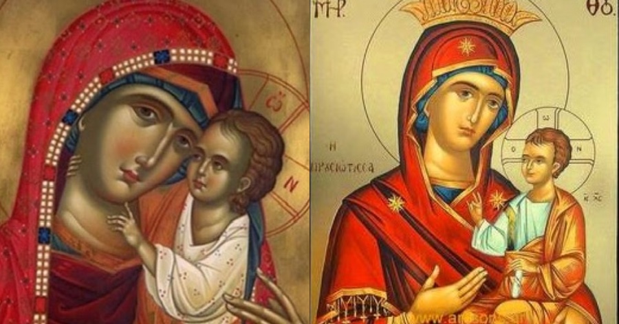Θεοτόκε Παρθένε, χαίρε κεχαριτωμένη Μαρία, ο Κύριος μετά Σου. Ευλογημένη Συ εν γυναιξί, και ευλογημένος ο καρπός της κοιλίας Σου, ότι Σωτήρα έτεκες, των ψυχών ημών.