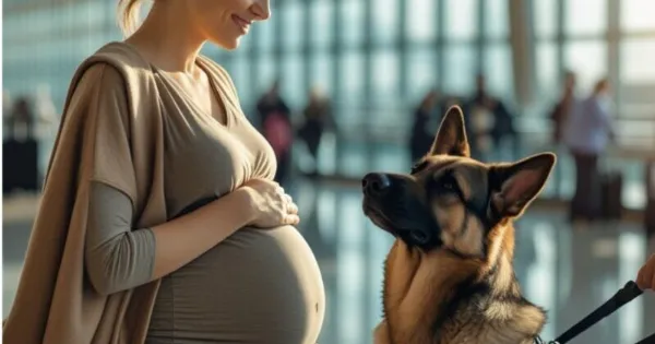 Στο αεροδρόμιο, ένας σκύλος υπηρεσίας επέστησε την προσοχή σε μια έγκυο γυναίκα.