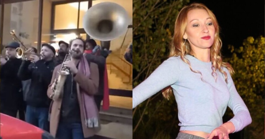 Η μπάντα μουσικών ΑΓΙΑ ΦΑΝΦΑΡΑ μαζεύτηκε κάτω από το σπίτι της στην πλατεία Αμερικής για να της κάνει καντάδα, με την ηθοποιό να βγαίνει στο μπαλκόνι και να τους ευχαριστεί για την αγάπη που της έδειξαν.